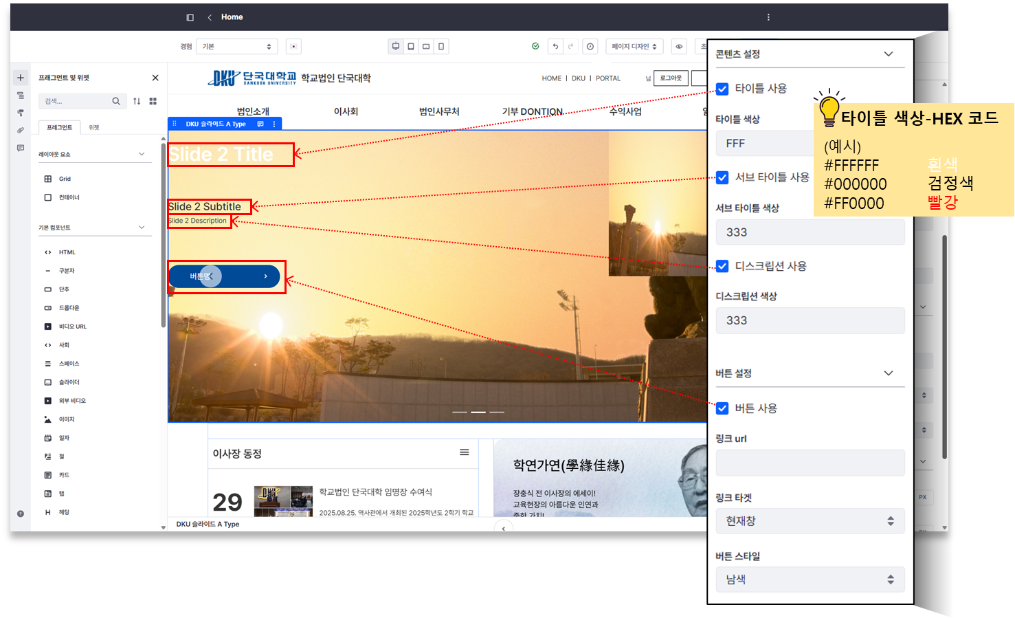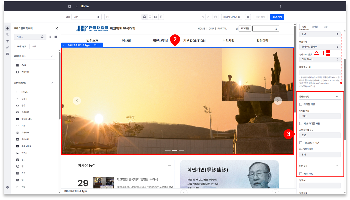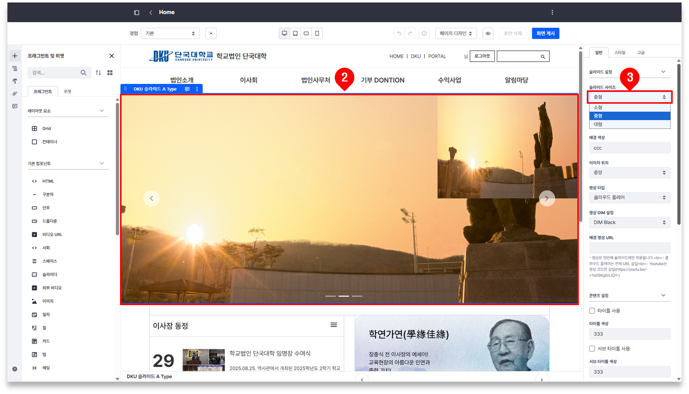 ② 배너 클릭 ⇒ ‘슬라이드 사이즈’ 에서 항목 선택 (소형/중형/대형)