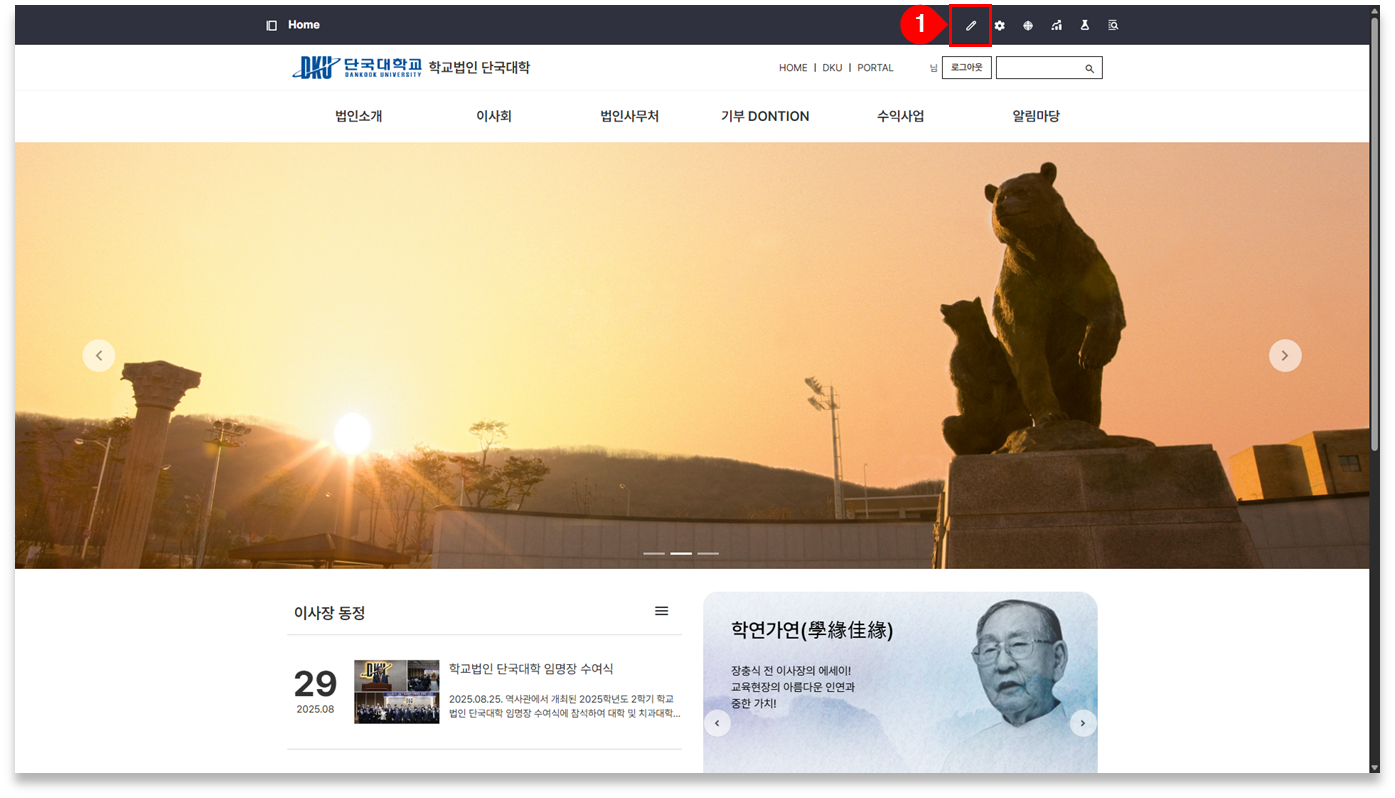 ① 메인 페이지에서 우측 상단의 ‘수정’ 버튼 클릭