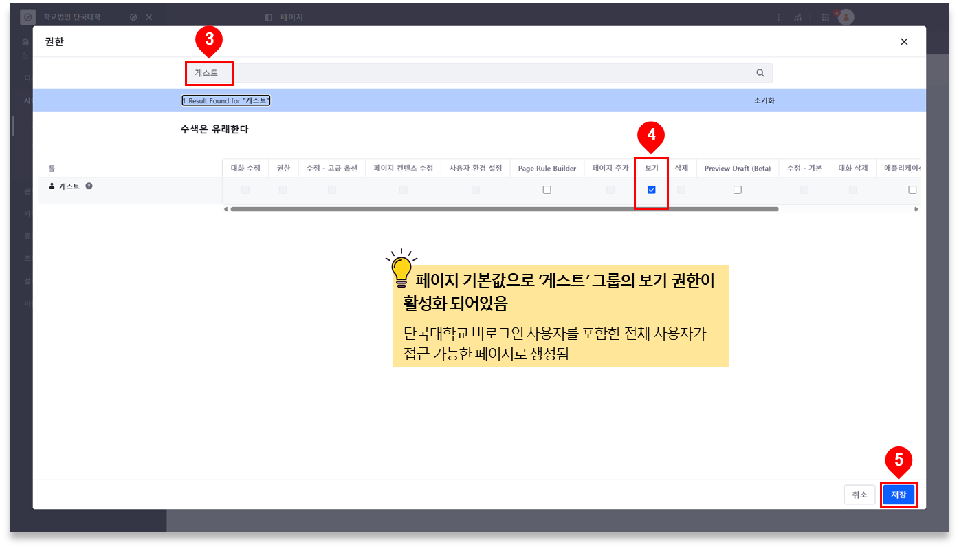 ※ 게스트 : 단국대학교 비로그인 사용자를 포함한 전체 사용자 그룹