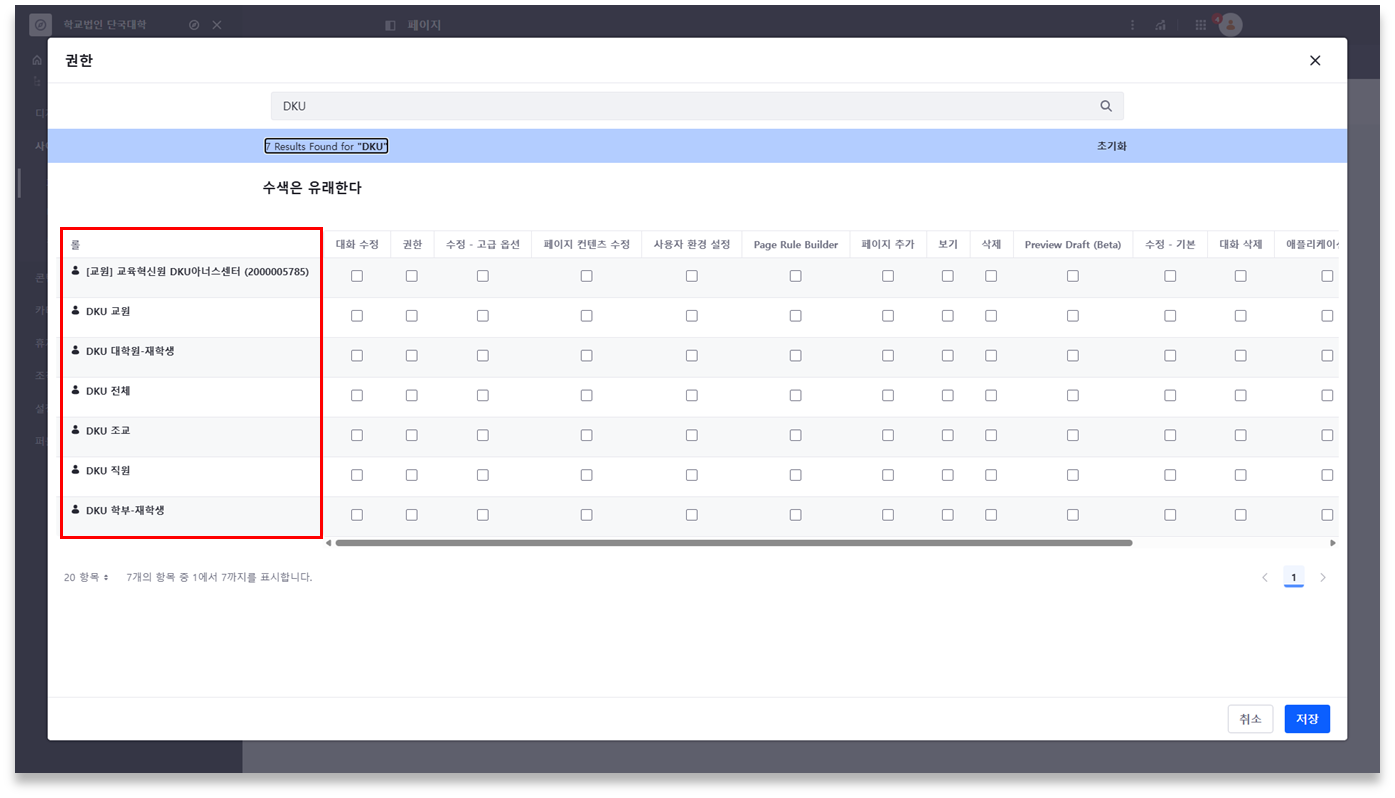 - DKU 교원/직원/조교 : 단국대학교 로그인 사용자 중 신분에 따라 구분된 그룹