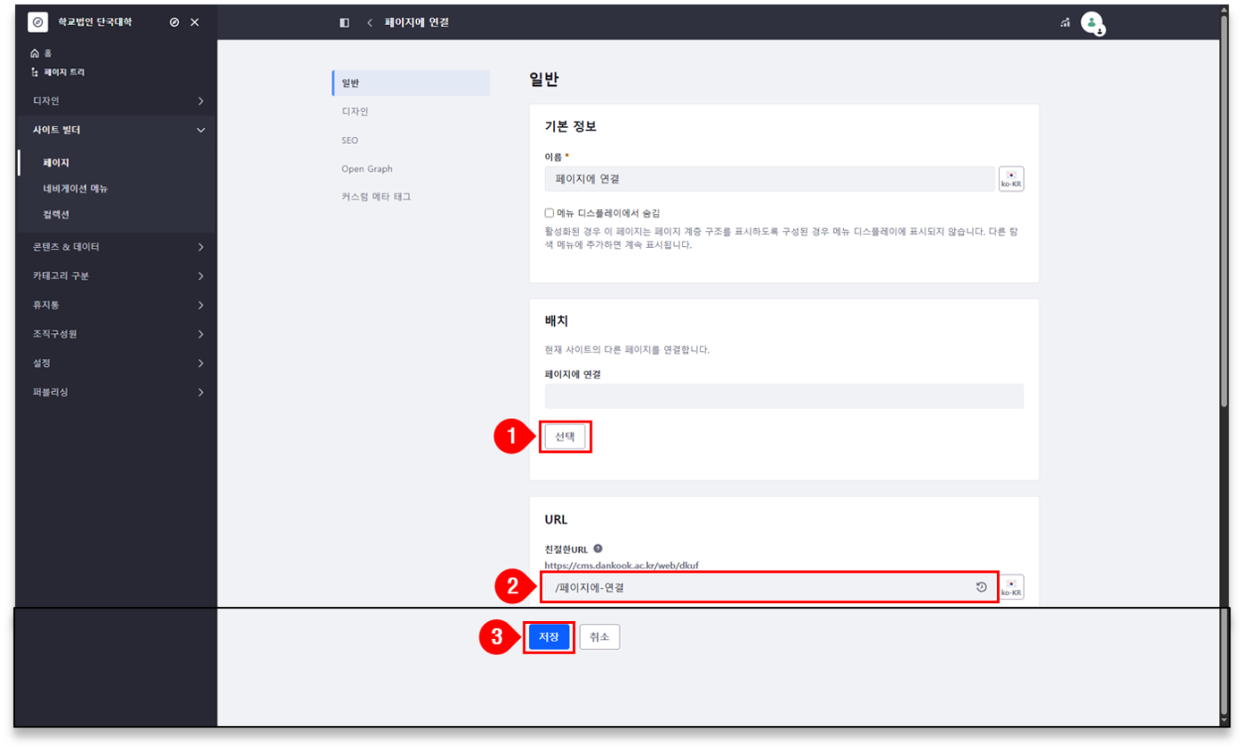 ② 페이지 URL 수정