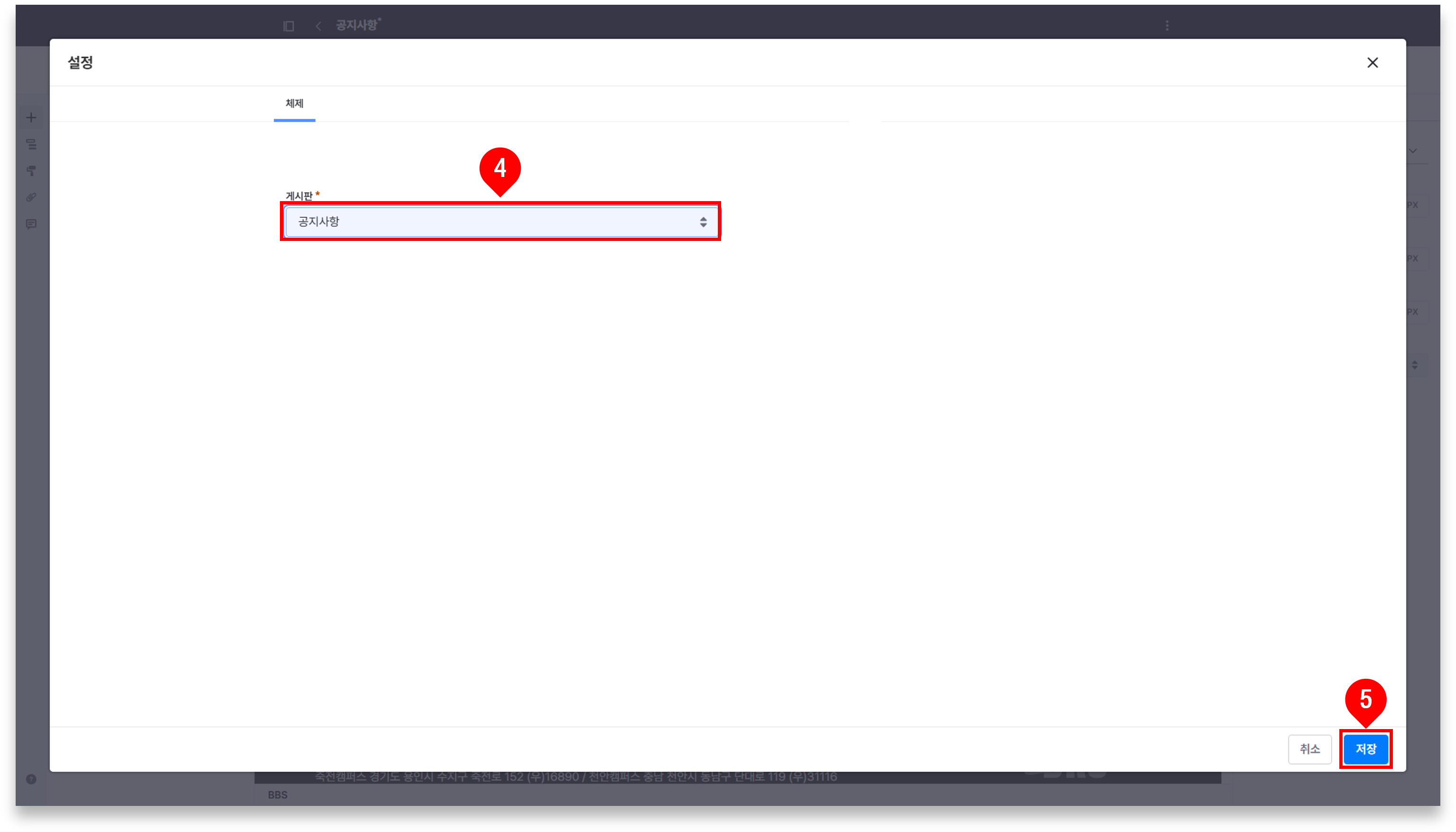 ④ 적용할 게시판 선택 후 [저장] 클릭