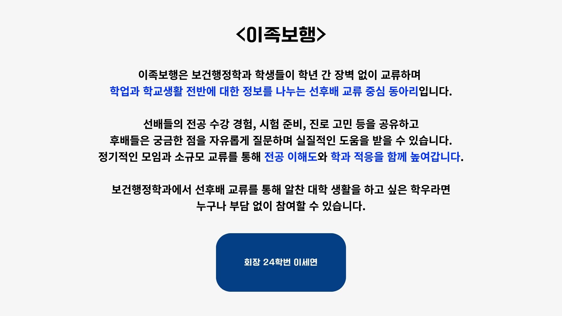 보건행정학과 선후배 교류 동아리: 이족보행