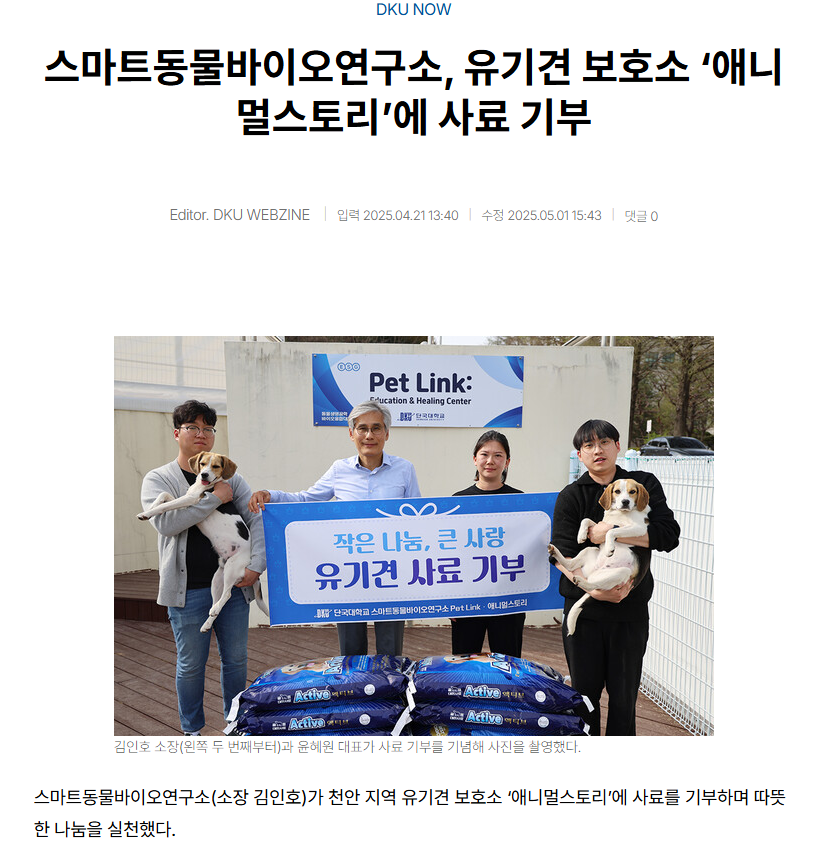 2025.05 - 천안시 유기견 보호소 '애니멀스토리'에 사료 기부