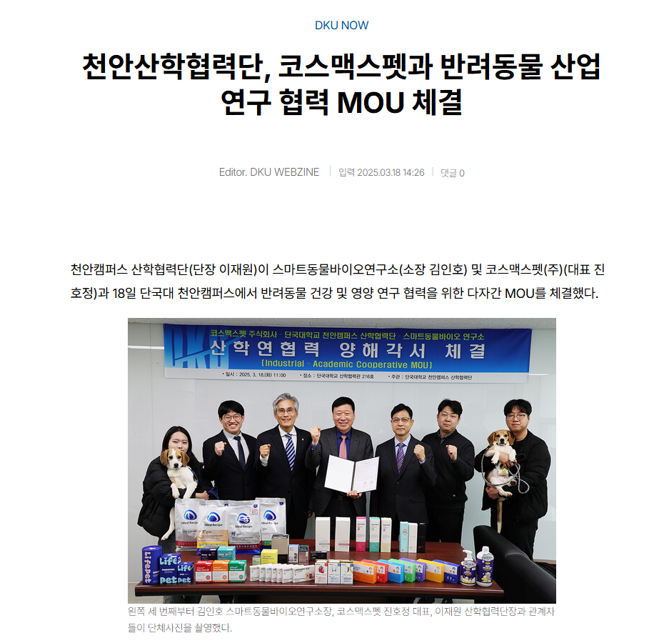 2025.03 - 김인호 연구소장 코스맥스펫과 연구 협력 MOU 체결