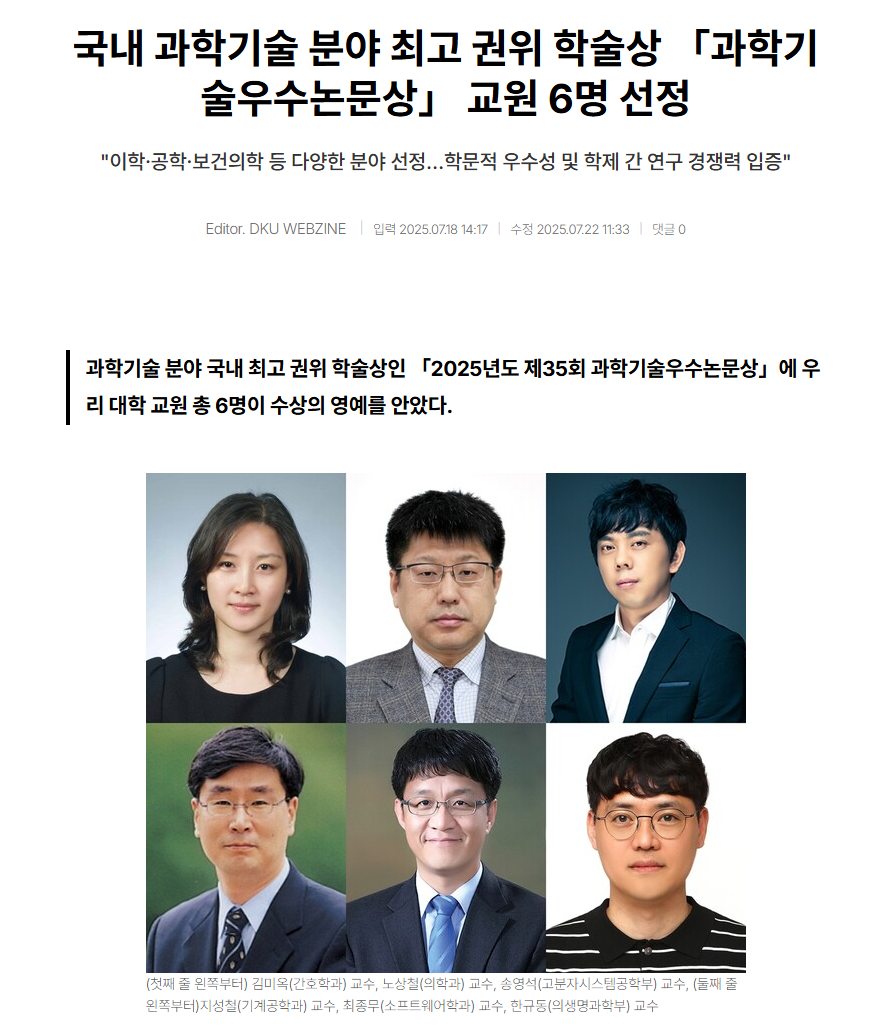 2025.07 - 스마트동물바이오연구소 공동연구원 한규동 교수 과학기술우수논문상 수상