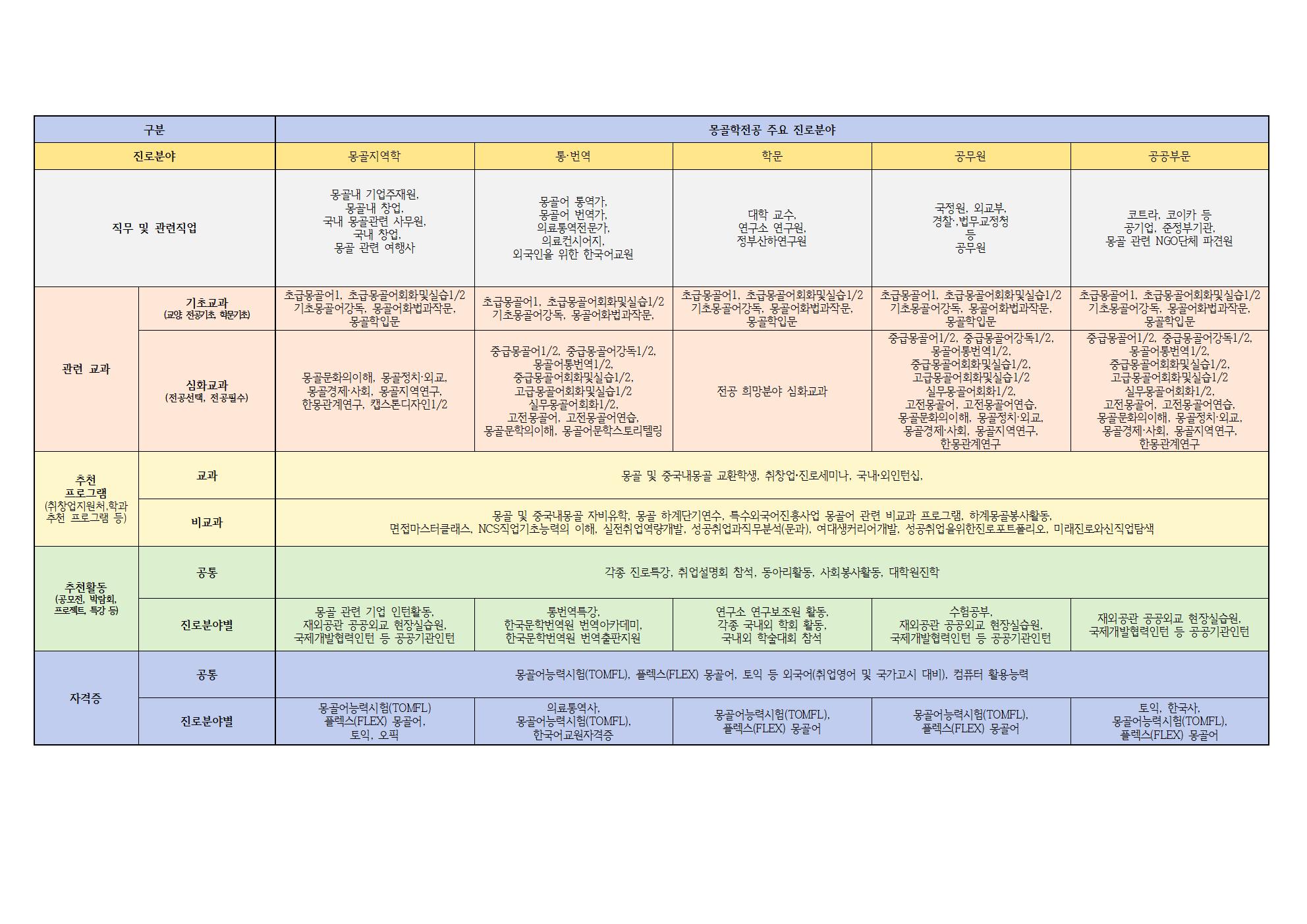 | 중급몽골어1 (3) | 중급몽골어2 (3) | 몽골어통번역1 (3) |