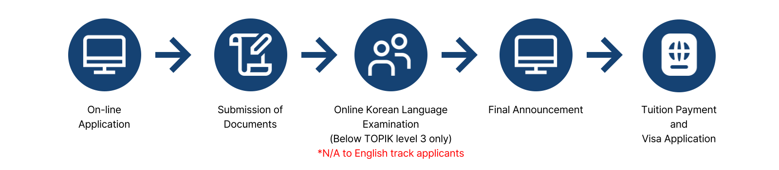 2) All applicants for Korean track programs (EXCEPT for department of Acting & Filmmaing) MUST apply for School of Global Core Education