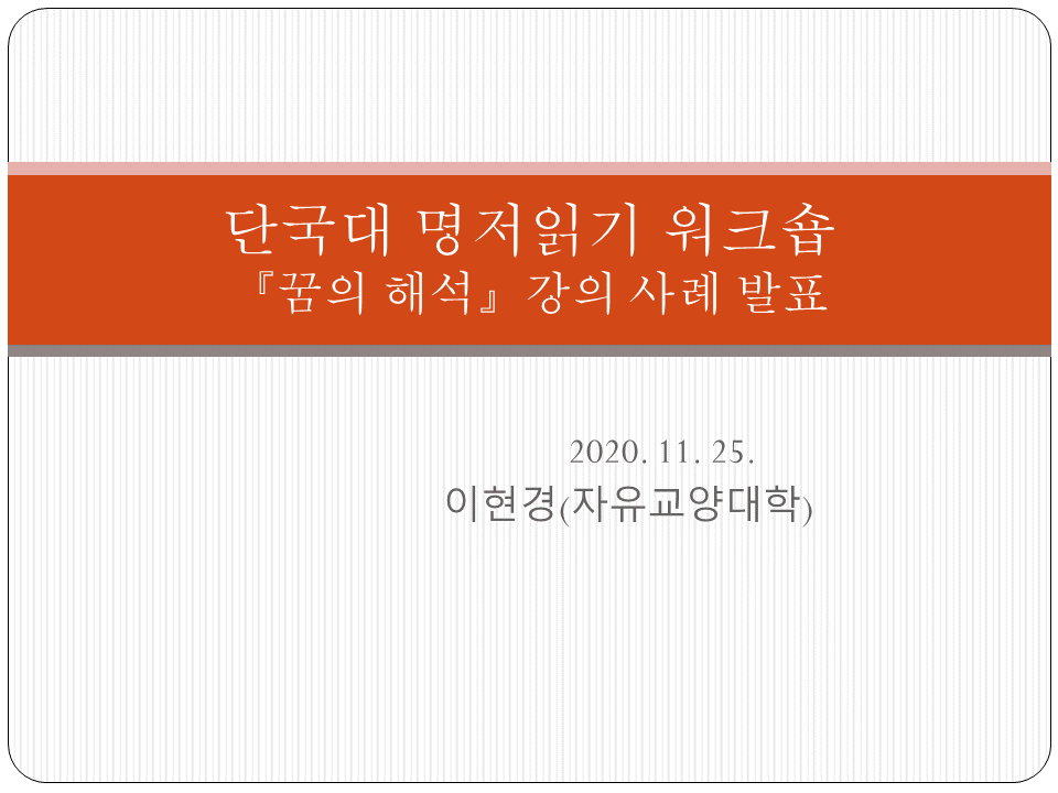 1. 발표주제: 『꿈의 해석』 강의 사례 발표