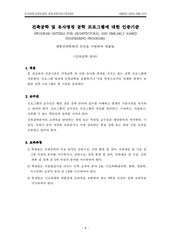 ≫건축공학 및 유사명칭 공학 프로그램에 대한 인증기준
