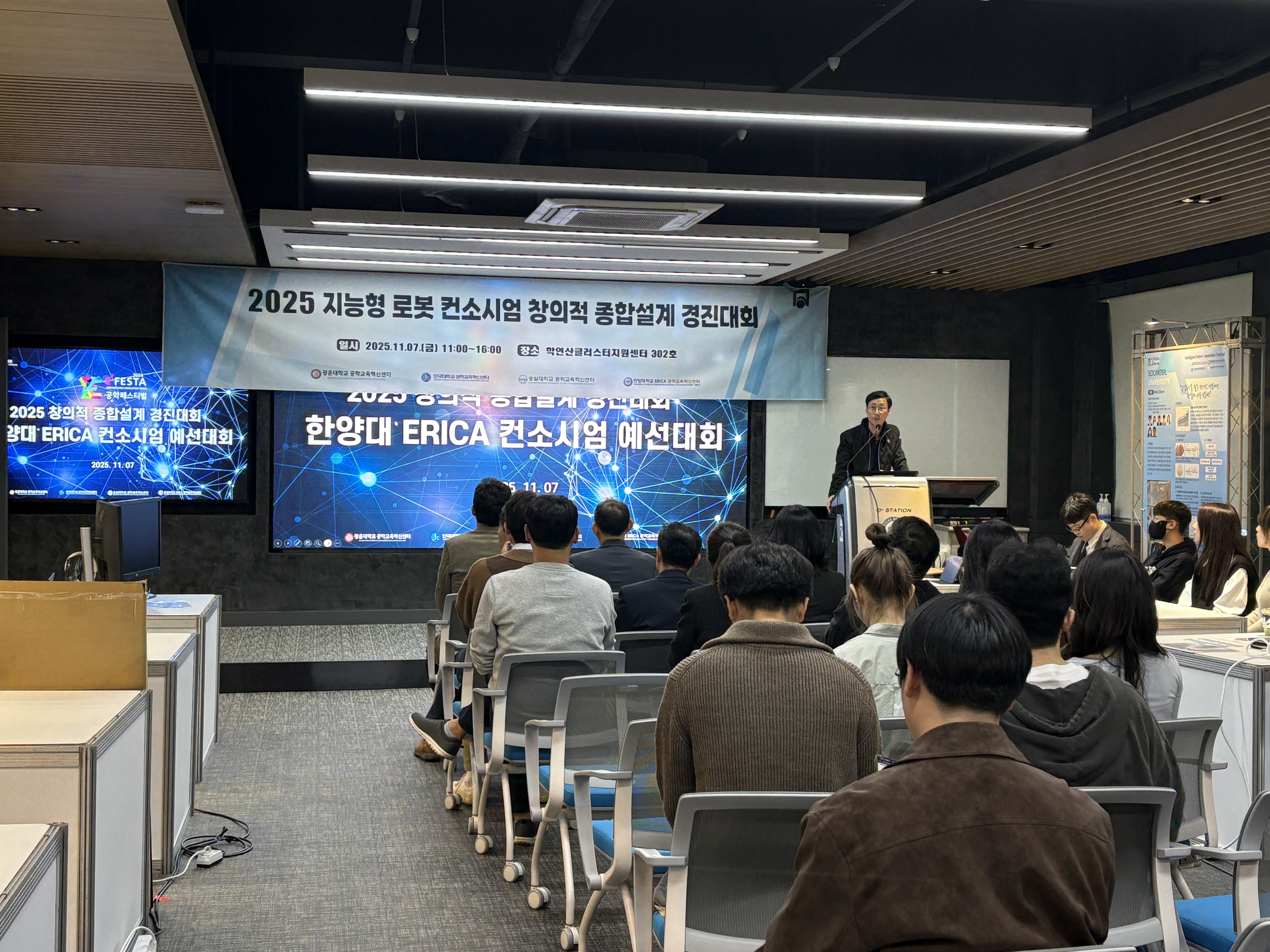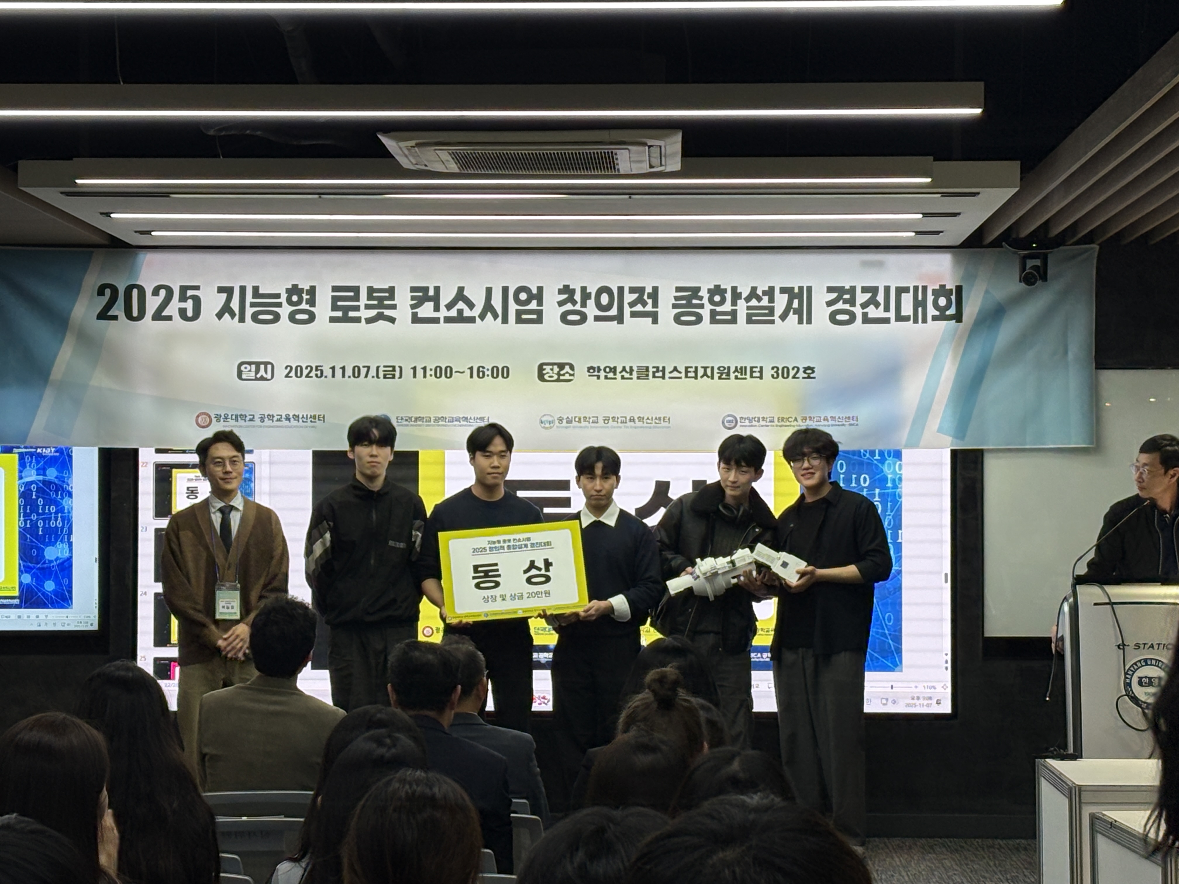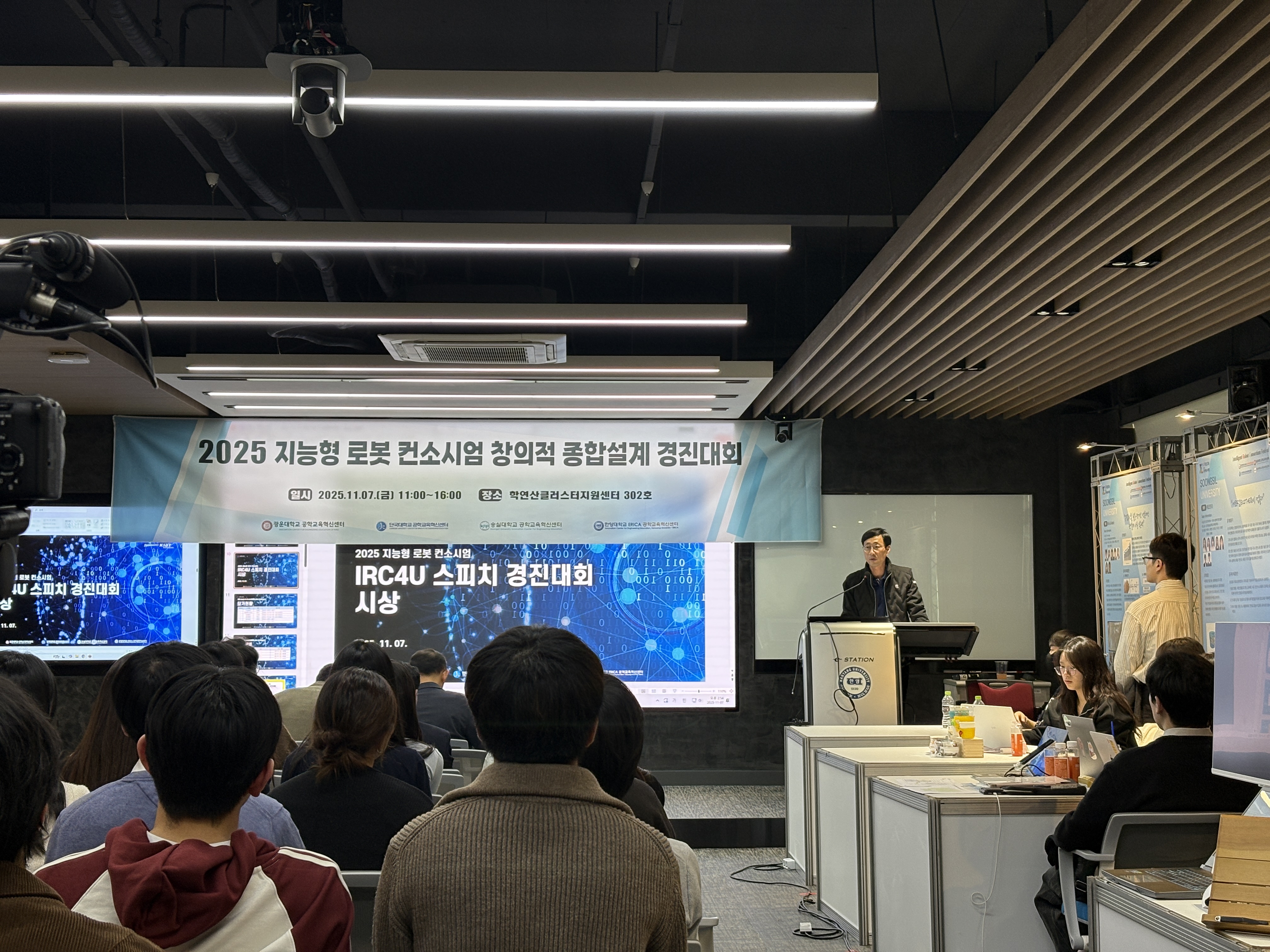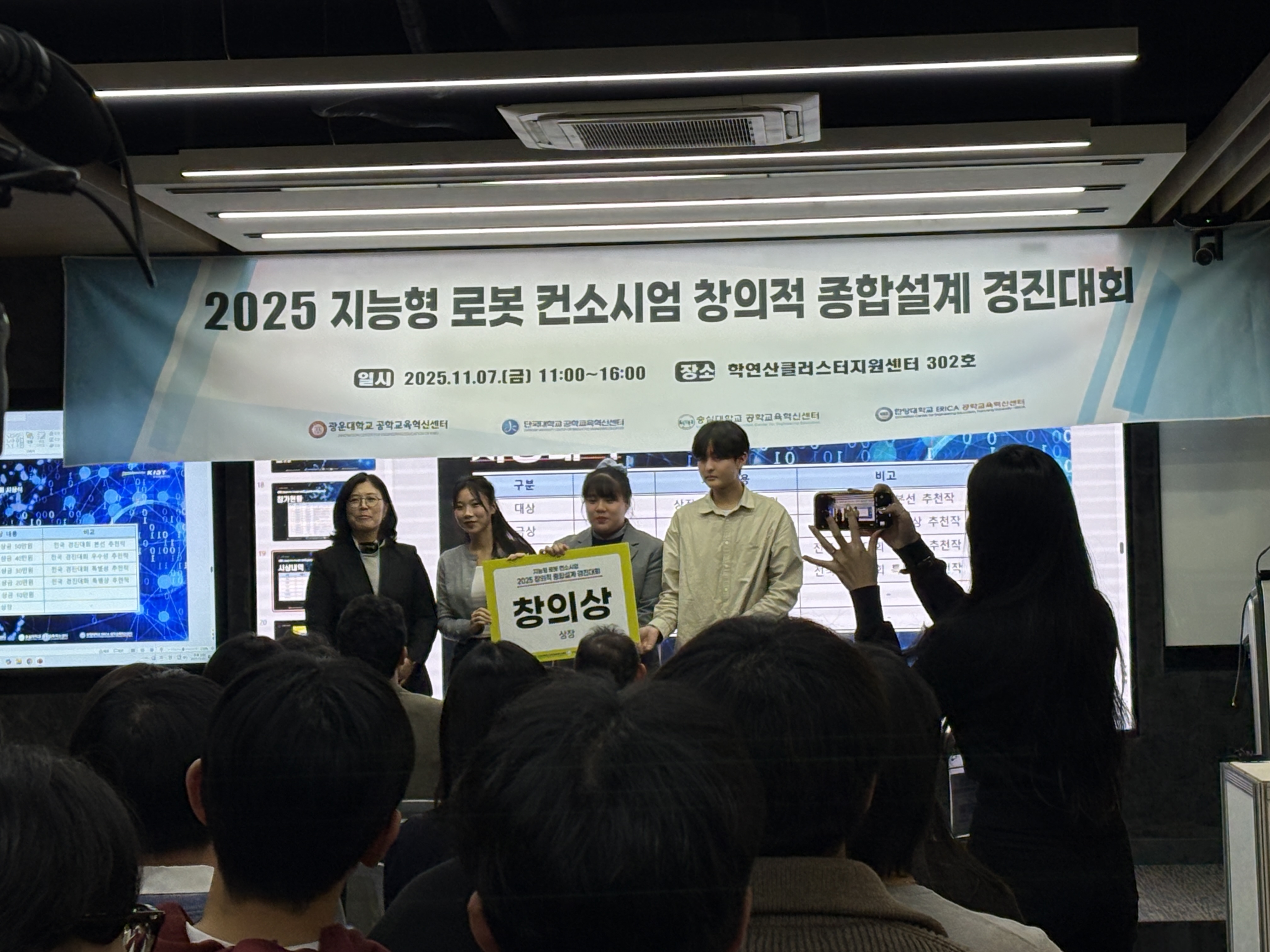 지능형 로봇 컨소시엄 창의적 종합설계 경진대회는 4개 대학교의 학생들이 모여서 창의적 종합설계 경진대회, 스피치 경진대회 등을 함께하며 서로의 작품과 아이디어를 공유하여 성장할 수 있는 프로그램이에요.