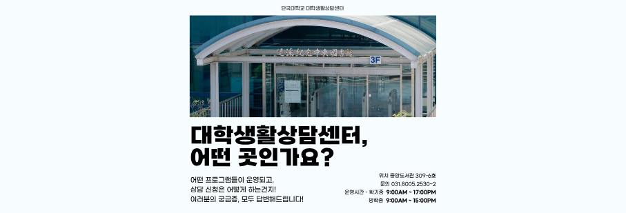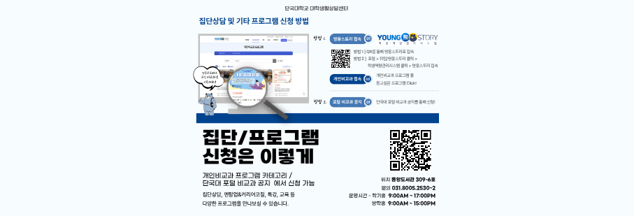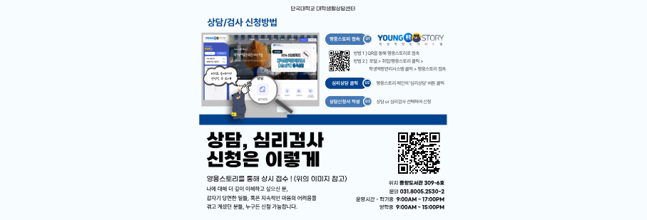 menu- [2024년 전국민 마음투자 지원사업] 단국대학교 대학생활상담센터 의뢰서 발급 안내