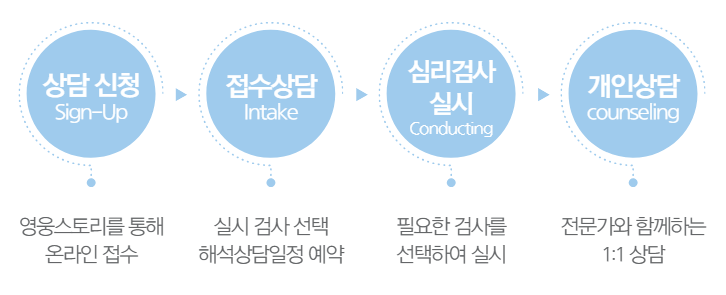 • 진행 중 심리검사도 진행 가능 (심리검사 신청 시, 개인상담을 제외하고 심리검사 및 해석상담만 진행)