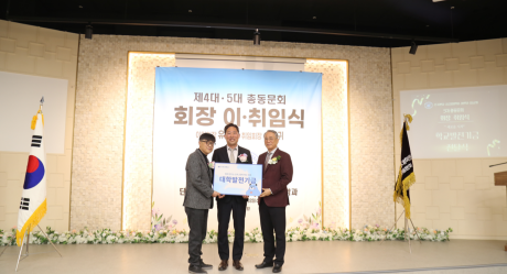2025년 12월 3일 첫눈이 내리는 아름다운 겨울날, 천안시에 위치한 한 식당에서 정책경영대학원 총동문회는 제4대 및 제5대 회장 이취임식을 성대하게 개최했다. 이날 행사에는 동문, 교수진, 대학원생 및 각계 인사들이 참석해 새로운 총동문회 회장에게 축하의 말을 전하며, 뜻깊은 시간을 가졌다. 유영길 이임회장은 "2년의 세월이 주마등처럼 지나갔다. 신임 회장 잘 보필하겠다"며 이임 소감을 밝혔다. 이에 신성귀 취임회장은 "지난 2년간 유영길 회장님 및 집행부에서 고생많이 하셨다. 훌륭한 교수님들께서 중심을 잘 잡아주셔서 총동문회가 잘 운영되었다. 교수님들의 가르침을 토대로 동문회를 잘 이끌어보겠다." 라고 취임 소감을 밝혔다. 정책경영대학원 경영학과 총동문회는 이번 이취임식을 기점으로 새로운 비전을 제시하며, 변화와 성장을 위한 출발점을 마련했다. 동문회는 앞으로도 학문적 교류뿐만 아니라, 사회적 가치 창출을 위한 다양한 활동을 통해, 사회 각계에서 활약하는 동문들이 서로 협력하고 성장할 수 있도록 지원할 계획이다. 이날 행사는, 2026년을 맞아 동문들의 새로운 결속력을 다지는 소중한 시간이 되었다. 정책경영대학원 경영학과 총동문회는 그간의 성과를 바탕으로 미래를 위한 더 큰 도전과 비전을 향해 한 걸음 더 나아갈 예정이다. ▲제 4대 유영길 이임회장(오른쪽)이 제 5대 신성귀 취임회장(왼쪽)에게 총동문회 깃발을 전달하고 있다. ▲ 제 5대 신임 신성귀 회장(가운데)은, "단국대학교 정책경영대학원 경영학과의 발전을 기원한다"며 대학발전기금을 기탁하였다.