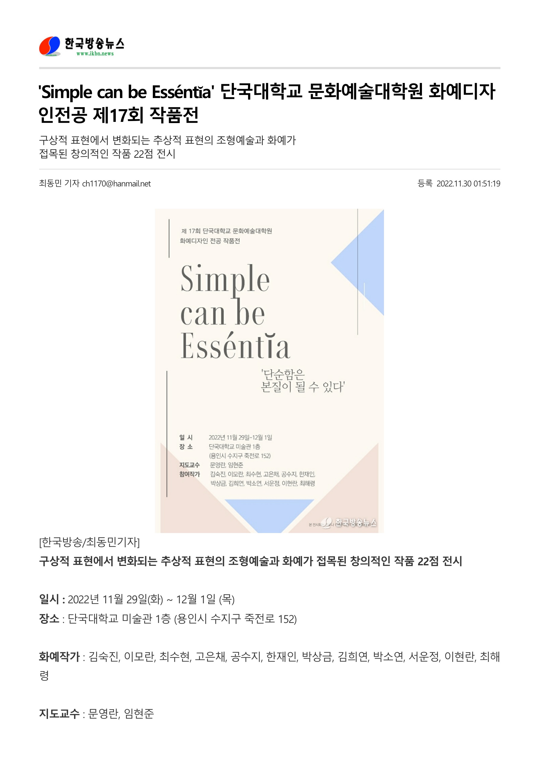 제 22회 단국대학교 문화예술대학원 화예디자인전공 작품전