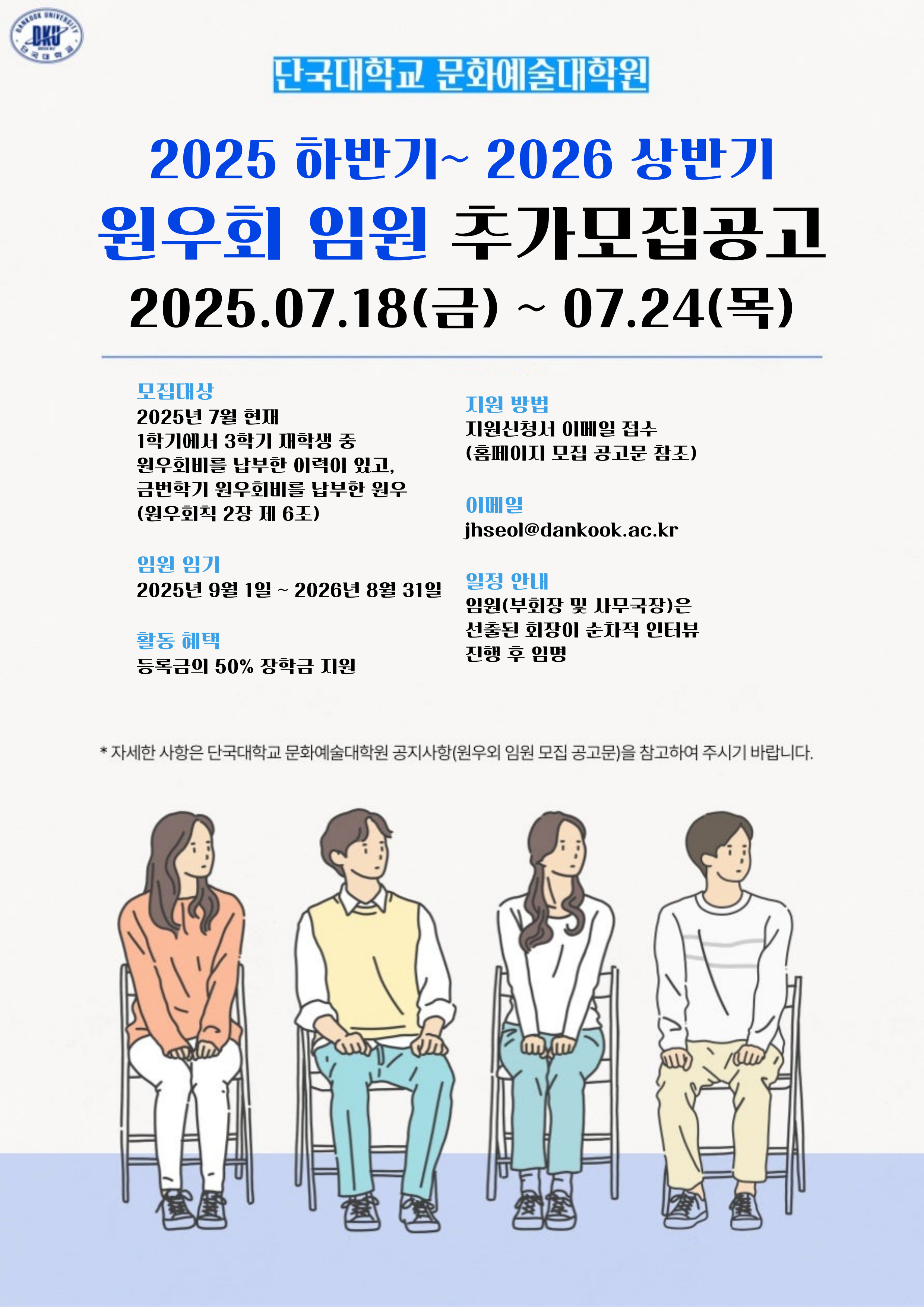 | 2025하반기 -2026상반기 원우회 임원 추가 모집 공고 | |