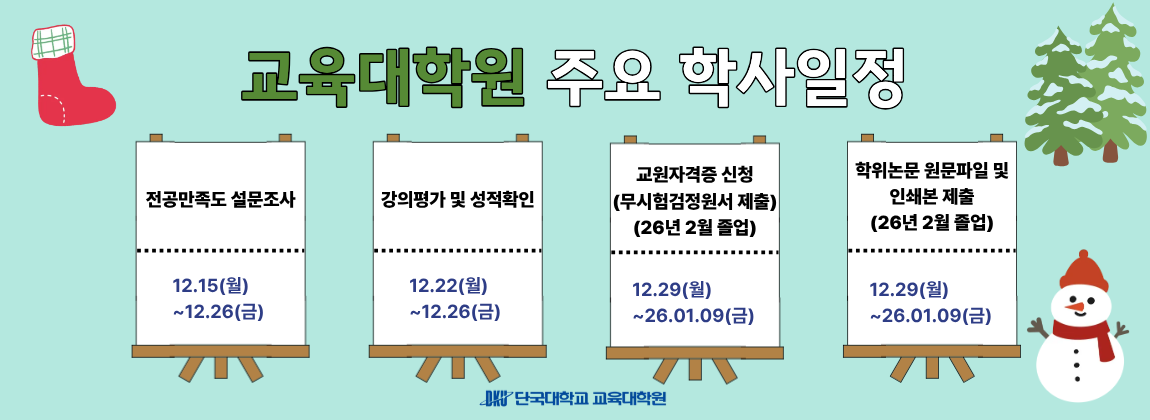 - 2025-12-16 [졸업예정자] 교원자격증 신청(무시험검정원서 제출) 안내 (2026년 2월 졸업)