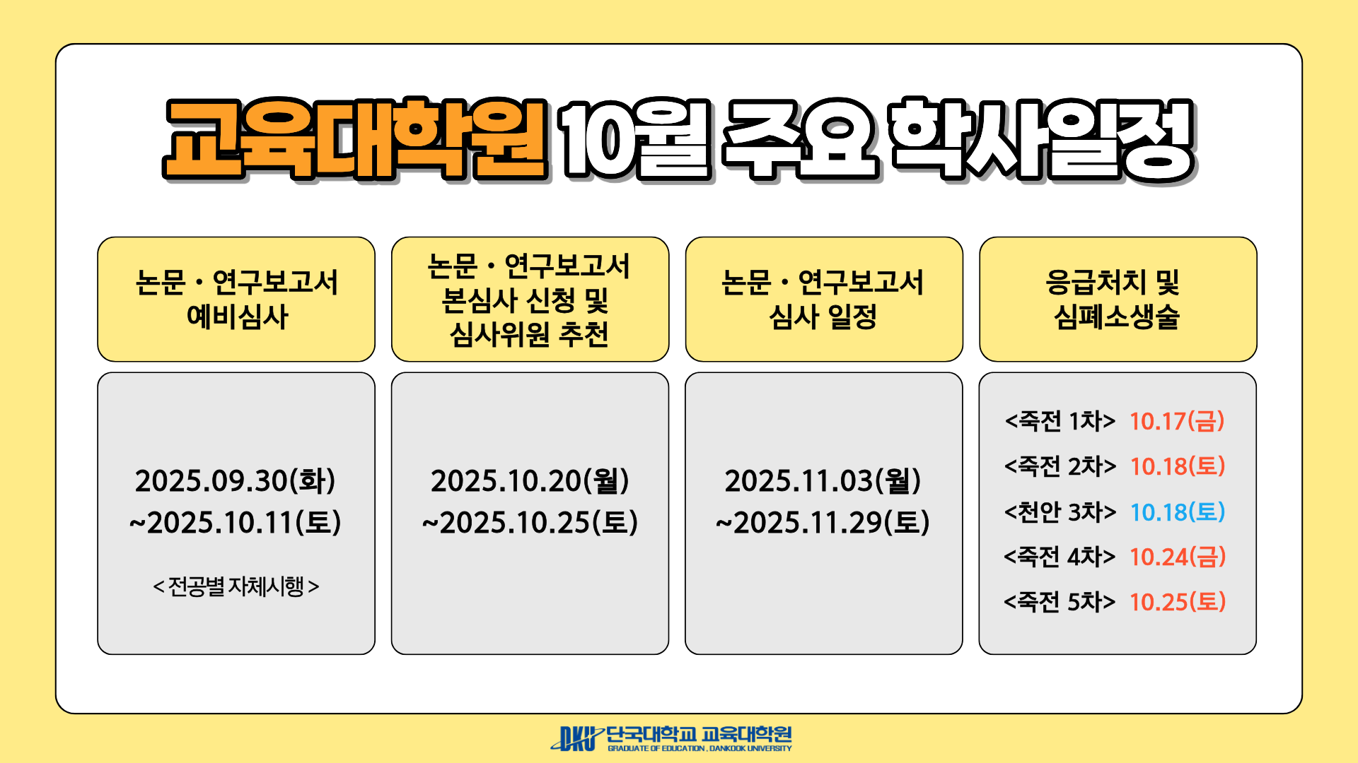 - 2025-09-11 [공통] 2025학년도 2학기 학위청구자격시험(교직) 일정·장소·출제범위 안내
