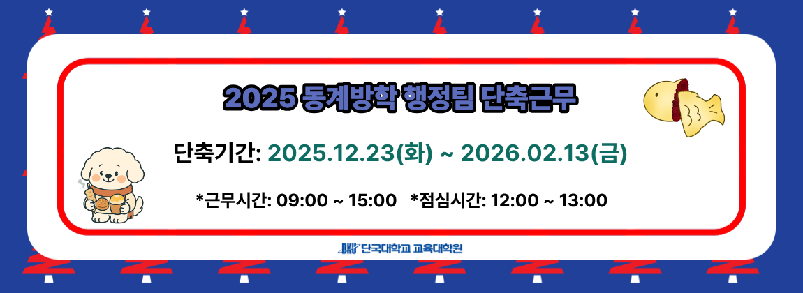 - 2025-12-16 [공통] 2025학년도 2학기 동계방학 중 단축근무 시행 안내