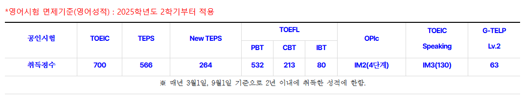 | 외국어 시험 면제조건은 어떻게 되나요? | |