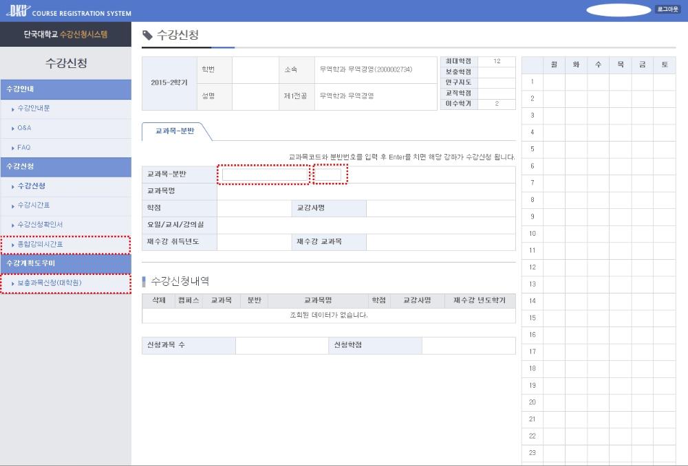 2. 수강신청 화면