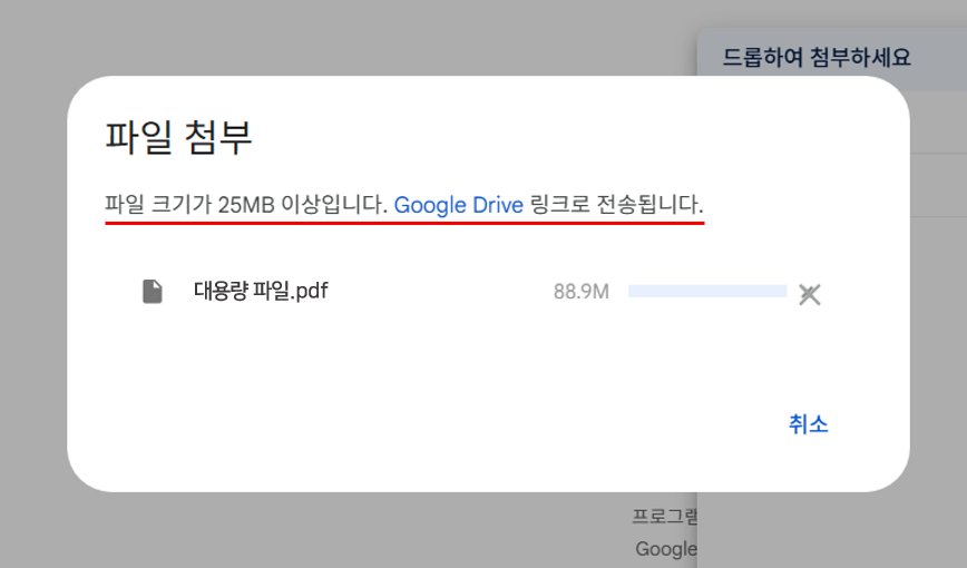 5. 파일이 25MB를 초과하는 경우 Google 드라이브에 자동으로 업로드됩니다.