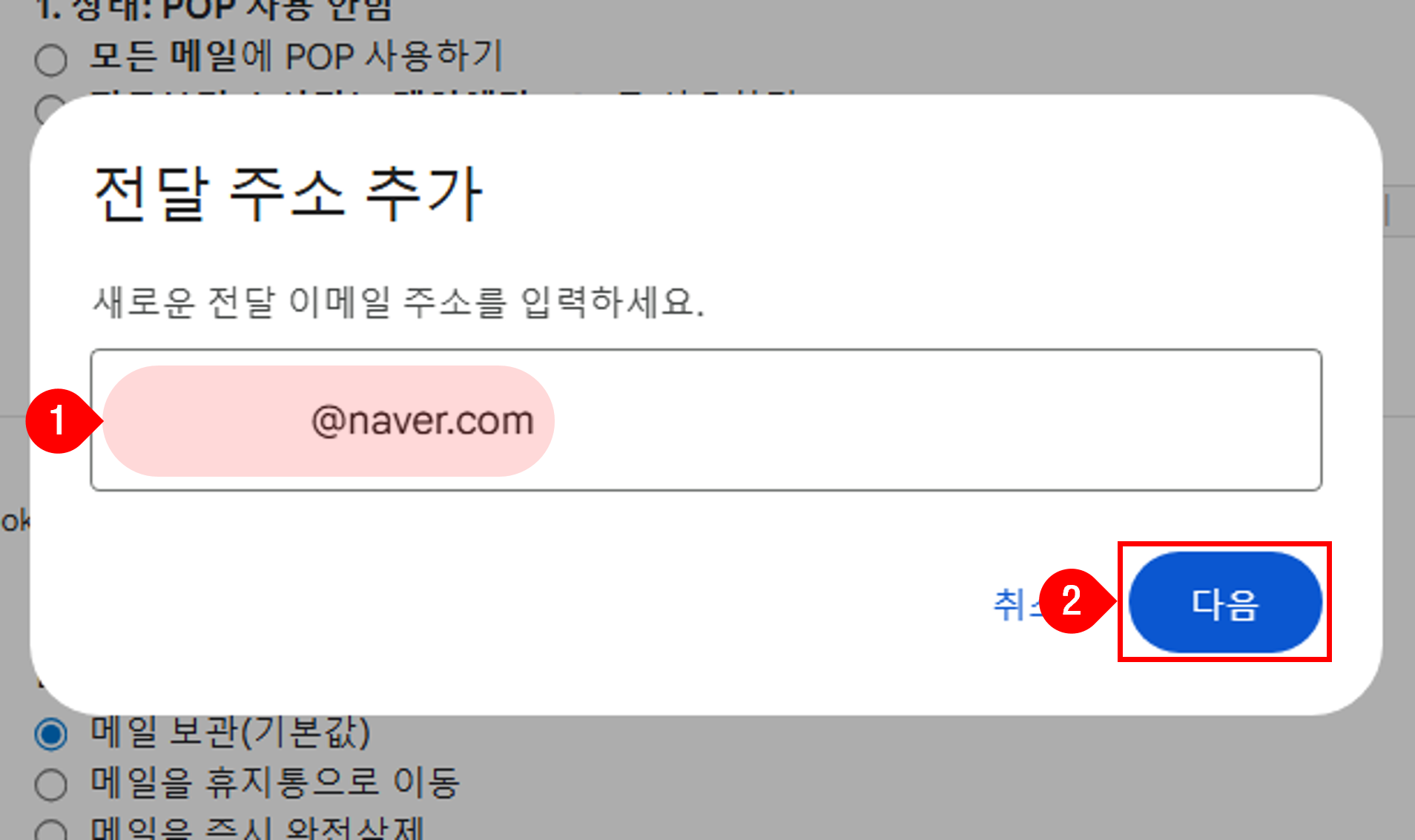 5. 메일을 전달받을 이메일 주소를 입력합니다.
