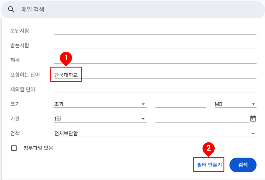 ※ '일치하는 대화에도 필터 적용'을 선택하면 기존 메일에도 필터가 적용됩니다.