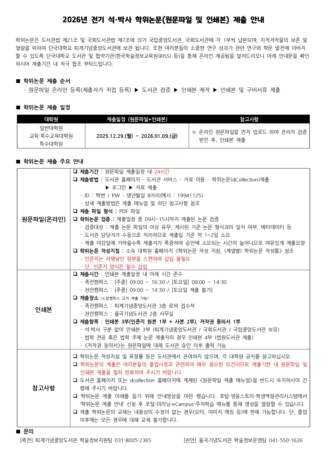 | 2026년 전기 학위수여(예정)자 석·박사 학위논문 원문파일 및 인쇄본 제출 안내 | |
