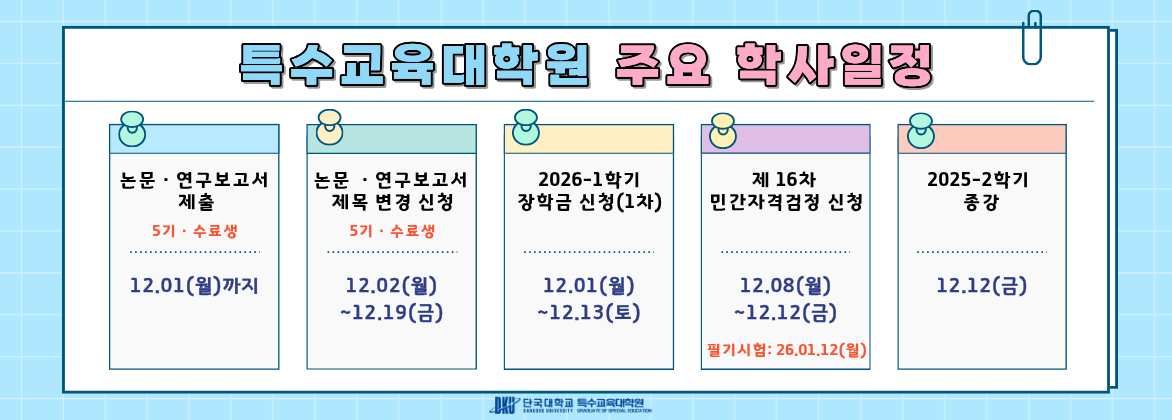 - [신입학]2026학년도 전기 단국대학교 특수교육대학원 신입생 모집안내