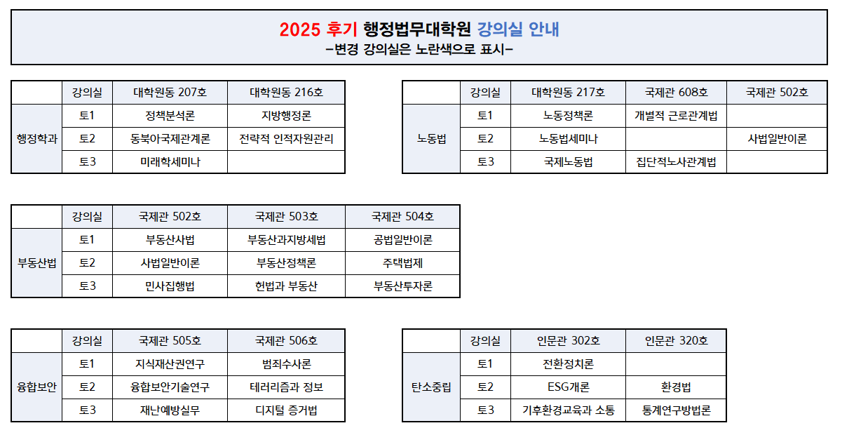 | 2025-후기 강의실 안내 [휴강 및 비대면 수업사항은 미표기] | |