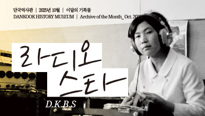 단국역사관 2025년 10월 이달의 기록물 : 라디오 스타 단국대학교 교육방송국(Dankook Broadcasting System)은 1958년 11월 3일 진리와 봉사의 교시 아래 신속·정확·공정을 국훈으로 삼고 올바른 대학문화 창달을 위한 대학언론으로 개국하였다. 방송을 통하여 대학의 전문교육을 보완하고 대학인의 전인적 인격형성에 이바지하며 참된 대학 언론과 건전한 대학문화를 조성함과 동시에 이를 국가와 사회로 확장시키는 것을 사명으로 삼고 있다. 정규 편성된 오디오 방송을 비롯해 영상 콘텐츠, 오디오 워크숍, 특별 음악 방송, 축제 기념 오픈 스튜디오, 방송제 등 다양한 행사를 진행하고 있다.   서울캠퍼스 DKBS 천안캠퍼스 DKBS 1958년 11월 도서관 창고에서 교육방송국 탄생 1958년 12월 콜사인 DBS 로 첫 정규방송 1960년 미상 방송실 규정 제정, 콜사인 DKBS로 확정 1976년 5월 DKBS 제1회 방송제 개최   1979년 4월 사회과학관 516호에서 방송반 탄생 1980년 10월 인문학관 316호로 이전, 음악 방송 1981년 3월 부속기관으로서 방송국으로 개국통지를 받음 1982년 5월 천안 DKBS 제1회 방송제 개최
