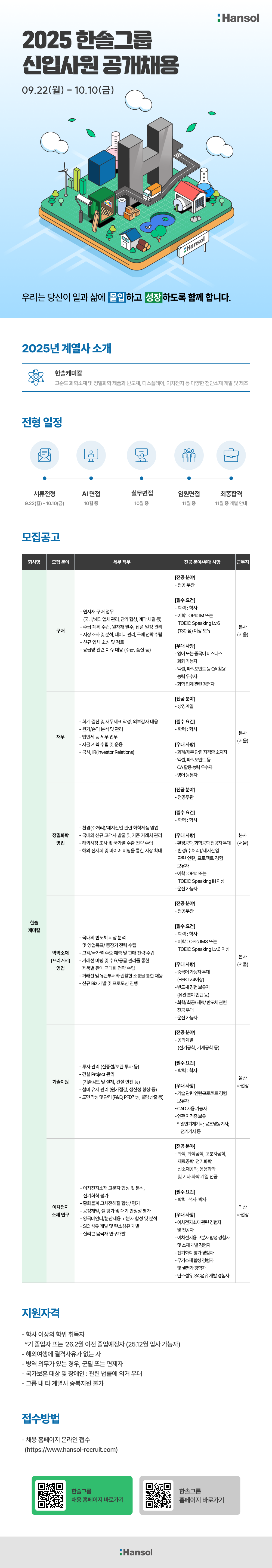 | [한솔케미칼] 2025 신입사원 채용 및 메타버스 채용 설명회 안내 (~10/10) | |