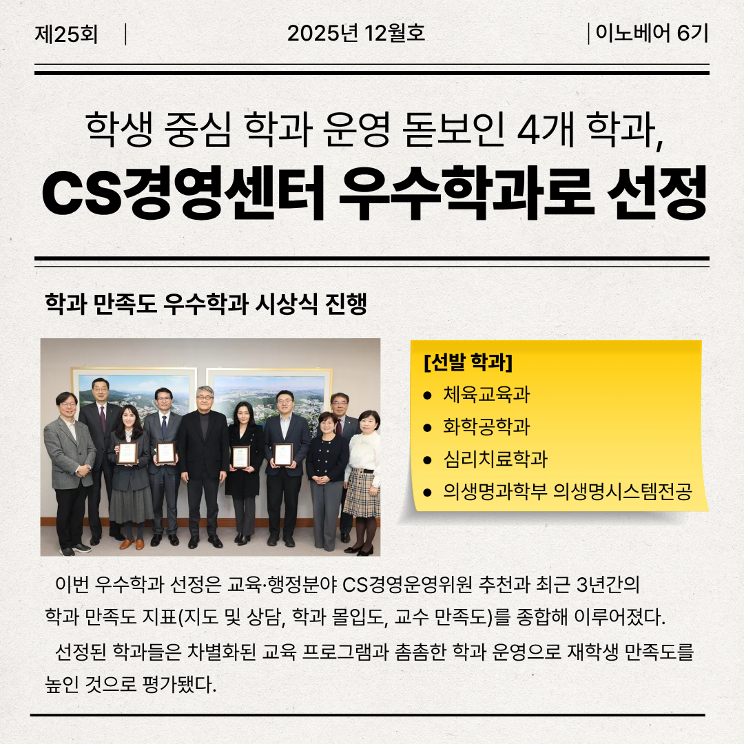 | CS경영센터, 2025학년도 우수학과 선정🏅 | |