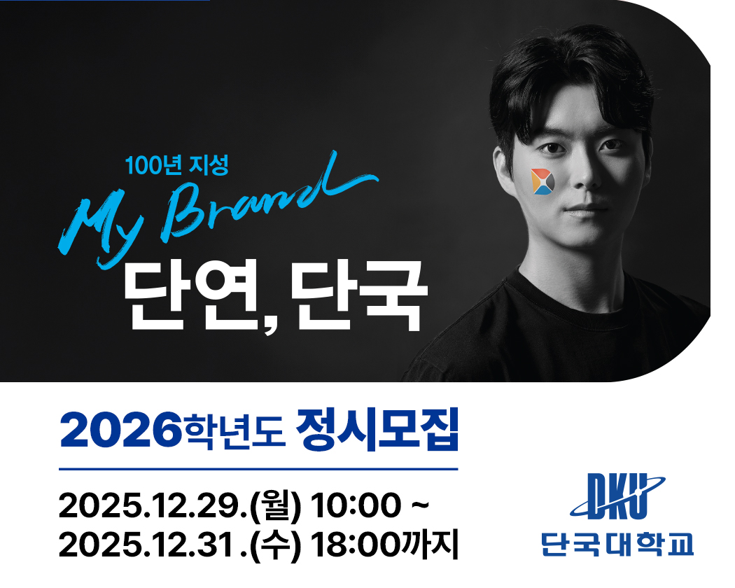 첨단분야 모집단위‘인공지능학과’신설  수능위주 지역메디바이오인재 신설  단국인재장학생 258명 선발… 1년간 수업료 전액 면제 우리 대학은 2026학년도 정시모집에서 총 1,759명(죽전 863명, 천안 896명)을 선발한다. 교육기회배려자, 농어촌학생, 특수교육대상자(죽전), 특성화고졸재직자 전형은 수시모집 이월 인원을 선발한다. 원서접수는 오는 29일(월) 오전 10시부터 31일(수) 오후 6시까지 진학사 원서접수 사이트(jinhakapply.com)를 통해 온라인으로 진행된다.     ​​​​​​​​​​​​​​​​​​​​​​​​​​​​​​​​​​​​​​​​​​​​​​​​​​​​​​​​​​​​​​​​​​​​​​​​​​​​​​​​​​​​​​​​​​​​​​​​​​​​​​​​​​​​​​​​​​​​​​​​​​​​​​​​​​​​​​​​​​​​​​​​​​​​​​​​​​​​​​​​​​​​​​​​​​​​​​​​​​​​​​​​​​​​​​​​​​​​​​​​​​​​​​​​​​​​​​​​​​​​​​​​​​​​​​​​​​​​​​​​​​​​​​​​​​​​​​​△주요 일간지에서 2026학년도 우리 대학 정시모집을 교육면 특집기사로 다뤘다.  ◆ 죽전캠퍼스 죽전캠퍼스는 수능위주(일반) 전형으로 가군(192명), 나군(253명), 다군(349명) 등 총 794명을 모집한다. 실기/실적위주(일반) 전형은 가군(29명), 다군(40명) 등 69명을 선발한다.  수능위주(일반) 전형은 수능 100%를 반영해 선발하며, 체육교육과는 수능 70%와 실기 30%를 적용한다. 실기/실적위주(일반) 전형은 모집단위별로 수능과 실기를 일정 비율로 반영한다. 교육기회배려자, 농어촌학생, 특수교육대상자 전형은 수능 100%를, 특성화고졸재직자 전형은 학생부교과 100%를 반영한다. 수능은 백분위를 활용한다. 탐구영역은 2과목 평균을 반영하며 영어는 등급별 자체 백분위 환산점수를 적용한다. 한국사는 반드시 응시해야 하고 등급별 가산점을 총점에 합산한다. 자연계열(건축학전공 제외)과 체육교육과는 수학(미적분·기하) 선택 시 수학영역 백분위의 5%를, 과탐 선택 시 백분위의 5%를 각각 가산점으로 부여 후 평균점수를 산출한다.  신설된 첨단 분야 모집단위인 ‘인공지능학과’는 ‘나군’에서 선발하며, 광역 모집단위 퇴계혁신칼리지는 ‘다군’에서 모집한다. 전 과정 영어로 강의하는 프리무스국제대학 ‘국제경영학과’는 ‘가’군, ‘모바일시스템공학과’는 ‘다군’으로 선발한다.   ◆ 천안캠퍼스 천안캠퍼스는 수능위주(일반·지역메디바이오인재) 전형으로 가군(316명), 나군(244명), 다군(187명) 등 총 747명을 모집한다. 실기/실적위주(일반) 전형은 가군(21명), 나군(35명), 다군(93명) 등 총 149명을 선발한다. 수능위주(일반·지역메디바이오인재) 전형은 수능 100%를 반영하며, 실기/실적위주(일반) 전형은 모집단위에 따라 각각 수능과 실기를 일정 비율로 적용한다. 교육기회배려자와 농어촌학생 전형은 수능 100%를, 특성화고졸재직자 전형은 학생부교과100%를 반영한다.  수능은 백분위를 활용한다. 의·약학계열(의예과·치의예과·약학과)은 국어, 수학(미적분·기하) 영역에서 표준점수를 활용한다. 탐구영역은 상위 1과목을 반영하지만, 의·약학계열은 과학탐구 2과목 평균 백분위를 적용하되 동점자 처리 시에는 표준점수를 활용한다. 영어는 등급별 자체 백분위 환산점수를 적용하며 한국사는 등급별 가산점을 총점에 합산한다. 자연계열(간호·심리학과 제외)은 수학(미적분·기하) 선택 시 백분위의 5%를 가산점으로 부여하며, 의·약학계열(의예과·치의예과·약학과)은 과탐Ⅱ 선택 시 백분위의 5%를 가산점으로 부여하여 평균점수를 산출한다. 신설된 지역메디바이오인재 전형은 의예과 ‘다군’, 치의예과 ‘나군’, 약학과 ‘가군’에서 선발하며,  충남·충북·대전·세종 지역 소재 고등학교에서 모든 교육과정을 이수한 졸업(예정)자 가운데 2026학년도 대학수학능력시험 응시자만 지원할 수 있다.   ◆ 단국인재장학생 등 다양한 장학제도   우리 대학은 우수 인재 선발을 위해 범정·혜당·단국인재·성적우수·글로벌인재·특성화고졸재직자·해병대군사학과 등 다양한 장학제도를 운영하고 있다. ‘단국인재장학생’은 정원 내 최초합격자 총258명[(죽전)130명, 퇴계혁신칼리지·경영경제대학·인문계열·자연계열·건축학전공/(천안)128명, 율곡혁신칼리지·인문계열·자연계열·간호대학·의약학계열]을 선정하며 수업료 전액(1년)을 지급한다.  국제경영학과와 모바일시스템공학과 대상 ‘글로벌인재’ 우수인재에게는 수업료, 생활관비, 교환학생 우대 등의 장학금과 특전이 부여된다. 수능위주(일반) 최초합격자 발표는 내년 1월 21일(수) 대학 입학 안내 홈페이지(ipsi.dankook.ac.kr)를 통해 발표된다.     [입학문의] 죽전캠퍼스 : 031)8005-2550~3, 천안캠퍼스 : 041)550-1234~6 홈페이지 :  http://ipsi.dankook.ac.kr/   #단국대 #입시 #정시 #광역모집 #장학금 #죽전캠 #천안캠 #입시정보 #인공지능학과