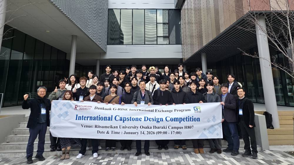 단국대·강남대·용인대 컨소시엄 학생 40여 명 참여, 글로벌 실무 역량 강화 단국G-RISE 사업단(단장 김오영)은 지난 13일부터 16일까지 일본 리츠메이칸대학교에서 ‘2026 국제 교류협력 프로그램’을 성황리에 개최했다. 이번 프로그램은 대학 간 글로벌 네트워크를 강화하고 학생들의 창의적인 설계 능력을 세계 무대에서 검증하기 위해 마련됐다. 행사에는 단국대, 강남대, 용인대로 구성된 단국G-RISE 사업단 컨소시엄 교수진과 학생 40여 명이 참여했다. 지난 14일 리츠메이칸대학 오사카 이바라키 캠퍼스(OIC)에서는 ‘국제 캡스톤디자인 경진대회’가 열렸다. 이번 대회에는 ▲RESPACK ▲ROOKIES ▲모두의 도커(Everyone's Docker) ▲Unihelper 등 총 14개의 학생팀이 참여하여 독창적인 캡스톤디자인 성과물을 발표했다. ▲ 단국G-RISE사업단 국제 캡스톤디자인 경진대회 단체사진 경진대회는 프레젠테이션과 질의응답 형식으로 진행되었으며, 최형준 단국G-RISE사업부단장, 최웅 강남G-RISE사업부단장, 이대권 용인대YIU-RISE사업단 교수가 각 섹션의 좌장을 맡아 학생들의 기술적 완성도와 사업화 가능성을 중심으로 심도 있는 논의를 이끌었다. 이어 지난 15일에는 리츠메이칸대학 키누가사 캠퍼스에서 단국G-RISE사업단과 리츠메이칸대학 아트리서치센터(ARC) 간 상호협력을 위한 양해각서(MOU) 체결식이 진행됐다. ▲ MOU체결 기념사진 (왼쪽부터) 아카마 료 센터장(리츠메이칸대 아트리서치센터), 김오영 단장 리츠메이칸대학 아트리서치센터와 MOU 체결 “경기도 G7/GX 글로벌 협력 기반 마련” 이번 협약을 통해 양 기관은 ▲학술 및 연구 인력 교류 ▲공동 프로젝트 수행 ▲학생 교류 프로그램 확대 등 미래 지향적인 협력 관계를 구축하기로 합의했다. 협약식에는 김오영 단장과 아카마 료(Akama Ryo) 센터장(리츠메이칸대 아트리서치센터) 을 비롯한 양 기관 주요 관계자들이 참석했다. 프로그램에 참여한 학생들은 경진대회와 협약식 외에도 리츠메이칸대학교의 첨단 교육 인프라와 아트리서치센터(ARC)를 견학하며 글로벌 교육·연구 환경을 직접 체험하는 시간을 가졌다. 김오영 단국G-RISE사업단장은 “이번 국제 교류협력 프로그램을 통해 학생들이 글로벌 시장에서 요구되는 역량을 직접 확인하고 보다 넓은 시야를 갖는 계기가 되었기를 바란다”며 “앞으로도 해외 유수 대학과의 지속적인 협력을 통해 세계를 무대로 활약할 실무형 인재 양성에 힘쓰겠다”고 밝혔다. [대학뉴스 제보] 죽전 홍보팀 : 031-8005-2032~5, 천안 홍보팀 : 041-550-1061