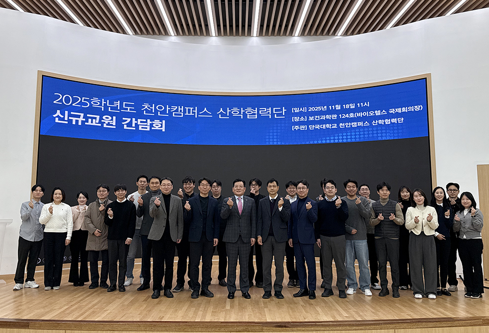 신규 교원 연구 역량을 대학 성장 동력으로…R&D 원스톱 통합지원 확대 천안캠퍼스 산학협력단(단장 이재원)이 신규 임용 교원들을 대상으로 한 「2025학년도 산학협력단 신규 교원 간담회」를 열고 연구수주–기술사업화–창업까지 이어지는 원스톱 R&D 지원 체계를 소개했다. ▲「2025학년도 산학협력단 신규교원 간담회」 참석자 기념 사진 이번 간담회는 18일(화) 천안캠퍼스 보건과학관 바이오헬스 국제회의장에서 개최되었으며 천안캠퍼스 산학협력단(산학연구기획팀, 연구지원팀, 기술사업화센터, 생명공학창업보육센터, 공동기기센터), 교무처 연구팀, 차세대디스플레이 혁신융합대학사업단이 공동으로 참여해 2026년도 정부 R&D 정책 방향, 캠퍼스 산학연 혁신 전략, 교내 연구비·장비 지원, 창업 및 기술사업화 프로그램을 종합적으로 안내했다. 행사에는 오좌섭 산학부총장, 이재원 천안캠퍼스 산학협력단장, 송병구 교무처장, 문세영 공동기기센터장, 이기녕 교수(국립강릉원주대)를 비롯해 신규 교원 50여 명이 참석했다. ▲이번 간담회는 교내 연구 지원과 기술사업화, 교원창업 등 R&D 전반의 지원 체계를 안내했다. 이날 간담회에서는 ▶산학협력단 소개 및 2026년도 정부 연구비 지원 정책 ▶전문연구회 및 대응투자 신청제도 ▶교외연구과제 신청·집행 절차 ▶기술이전 및 사업화 프로그램 ▶창업보육센터 주요 지원사업 ▶공동기기센터 보유 장비 및 분석 의뢰 절차 ▶교내 연구비 지원체계 ▶차세대디스플레이 혁신융합대학사업단 연구·교육 지원 등 다양한 연구‧창업 지원 프로그램이 소개됐다. 특히 올해부터 신규교원(임용 5년 이내 전임교원)을 대상으로 도입된 ‘신진도전연구사업’, 2026년 시행 예정인 ‘역량강화연구’, ‘연구업적인센티브 및 피인용지수(FWCI) 인센티브 제도’ 등 달라진 대학 연구지원 정책도 안내되어 큰 관심을 끌었다. 또한 이기녕 교수(국립강릉원주대)가 ‘국가연구개발사업 및 산업기술정책’을 주제로 특강을 진행하기도 했다. 오좌섭 산학부총장은 “죽전–천안 두 캠퍼스가 함께 정부의 R&D 정책 변화에 발맞춰 연구–사업화–창업이 유기적으로 연결되는 통합 플랫폼을 구축해 나가고 있다”며 “신규 교원 여러분이 보유한 연구 역량과 아이디어가 대학의 성장 동력으로 연결될 수 있도록 산학협력단을 중심으로 전 주기적 R&D 지원 체계를 강화하겠다”라고 밝혔다. [대학 뉴스 제보] 죽전 홍보팀 : 031-8005-2032~5, 천안 홍보팀 : 041-550-1061