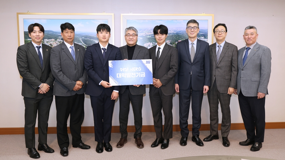 “후배 야구인 성장 지원… 단국 스포츠 경쟁력 강화에 힘 보탠다” 24일(월) KBO 2026 신인 드래프트를 통해 KT위즈에 입단한 임상우 군(국제스포츠전공 22학번)과 조건호 군(국제스포츠전공 22학번, KIA 타이거즈 연습생 지명) 및 야구부동문회가 대학 발전기금으로 총 3천만 원을 기탁했다. ▲ 프로구단에 입단한 임상우 군(오른쪽)과 조건호 군(왼쪽)이 안순철 총장에게 발전기금을 전달했다. 이번 기부는 임상우 군의 KBO 지명과 프로 입단을 기념해 마련됐다. 임 군은 계약금 중 1천만 원을 모교에 기부하며 후배 선수 육성을 위한 뜻을 전했다. 임 군은 야구 예능프로그램 ‘최강야구’를 거쳐 ‘불꽃야구’ 일원으로 활약하며 이름을 알렸다. 또한 야구부동문회는 2천만 원을 추가로 기탁 해 야구부 선수 지원과 훈련 환경 개선에 힘을 보탰다. 야구부동문회는 2012년부터 현재까지 총 1억 8,640만 원의 누적 기부액을 기록하며 꾸준히 모교 사랑을 실천하고 있다. 이날 발전기금 전달식에는 안순철 총장, 김재일 대외부총장, 신은종 대외협력처장, 염경호 체육부장, 김유진 야구부 감독, 김태우 야구부 코치 등 대학 관계자와 임상우 군, 조건호 군이 참석했다. ▲ 발전기금 전달식 단체 사진 임상우 군은 “단국대 야구부에서 보낸 시간이 지금의 저를 만들었다고 생각한다”라며 “프로무대에서 최선을 다해 모교의 명예를 높이고, 후배 선수들에게도 좋은 영향을 줄 수 있는 선배가 되고 싶다”고 밝혔다. 안순철 총장은 “학생 선수들이 프로무대에서 뛰어난 기량을 펼쳐 단국 스포츠의 자부심을 높여주길 기대한다”라며 “기탁 해 주신 발전기금은 학생 선수들이 꿈을 실현하고 역량을 발휘할 수 있도록 소중히 사용하겠다”고 감사를 전했다. #단국대 #발전기금 #체육부 [대학뉴스 제보] 죽전 홍보팀 : 031-8005-2032~5, 천안 홍보팀 : 041-550-1061