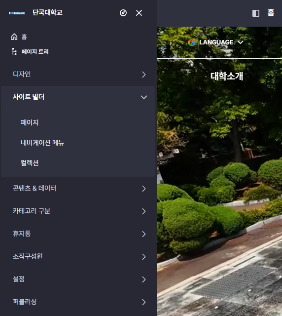 권한에 따라 다르지만 기본적으로 사이트의 레이아웃, 메뉴(페이지), 설정 등을 관리할 수 있습니다.