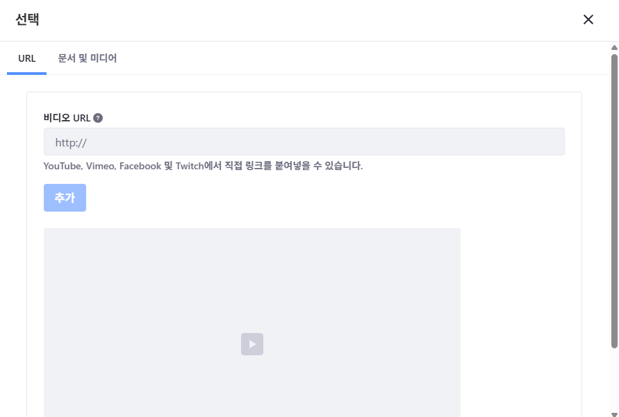 2) 외부 URL 입력 시 : https://를 포함한 전체 주소를 입력합니다.