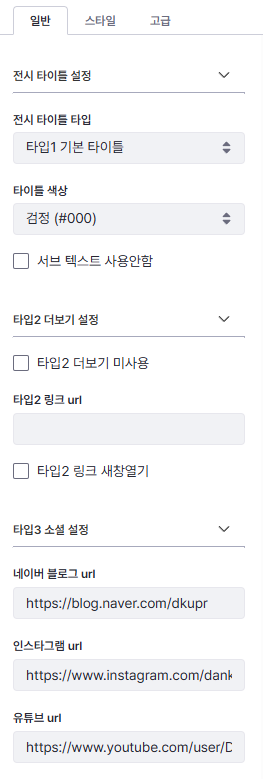 - 타이틀의 노출 타입을 설정 가능합니다.