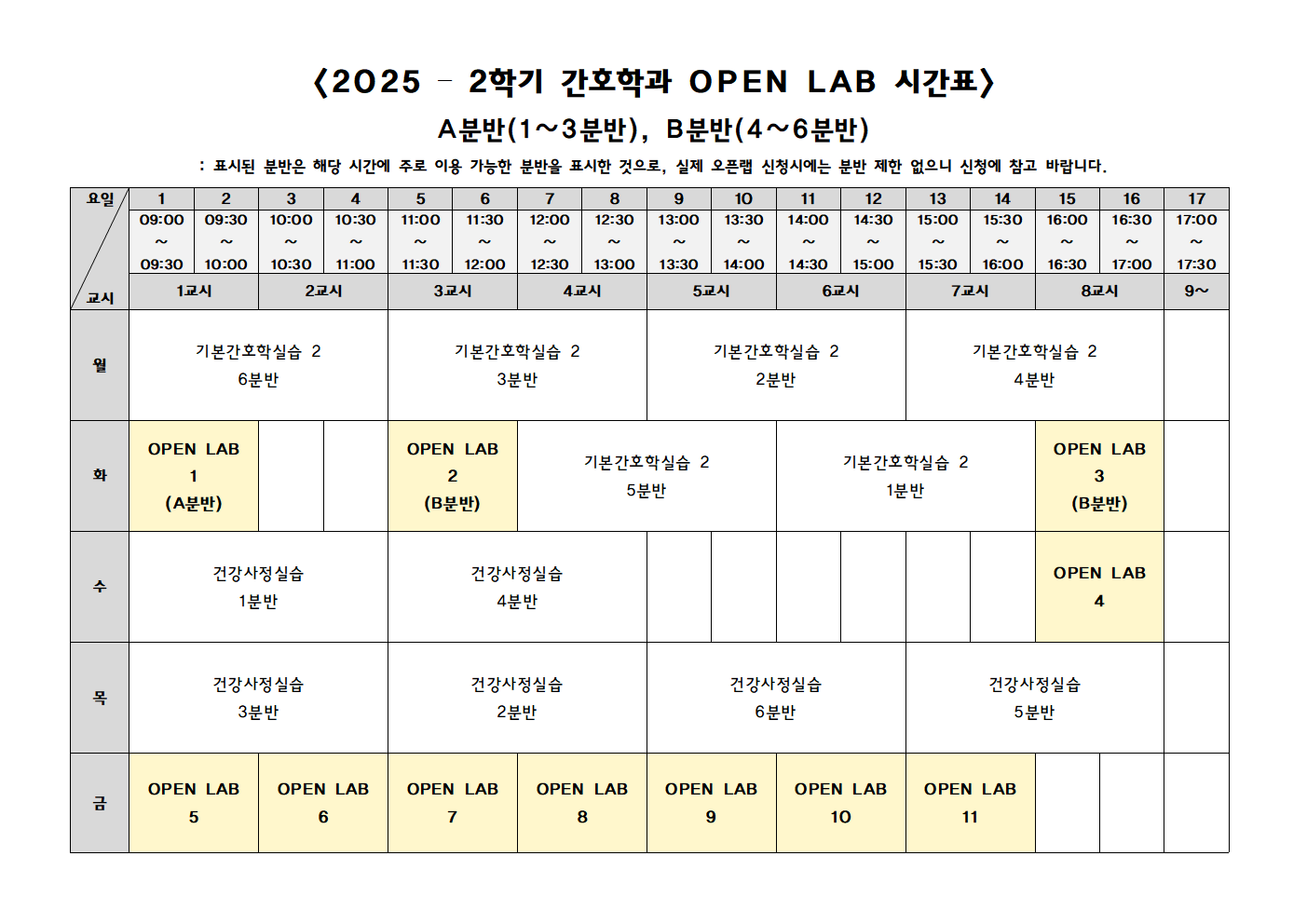 | 2025-2학기 2학년 Open Lab 일정 | |