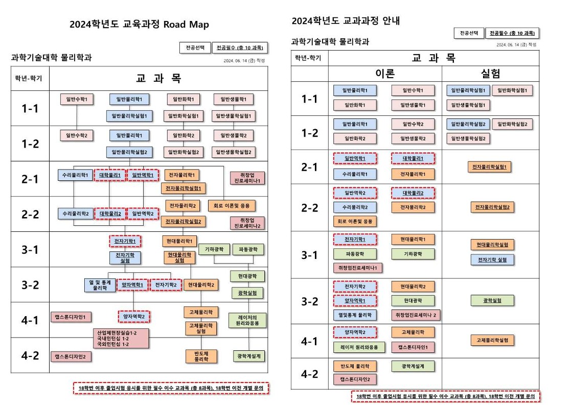 [물리학과]2024학년도 교육과정(Road Map)_(2024.06.14. 기준) H